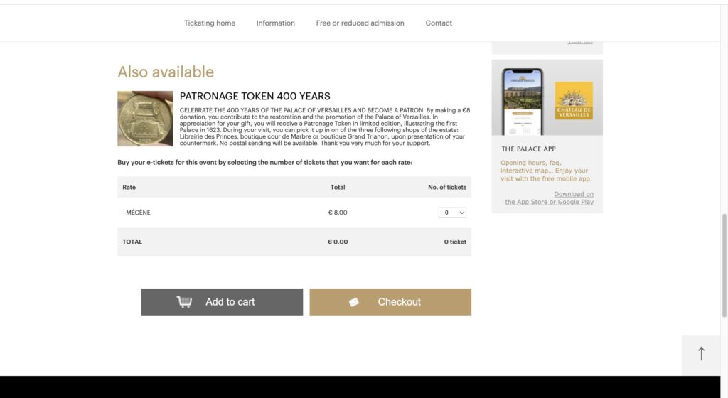 4. 記念コインやオーディオガイドは任意なので購入する方はここで枚数を入力します。(購入しない方はCheckoutに進む)