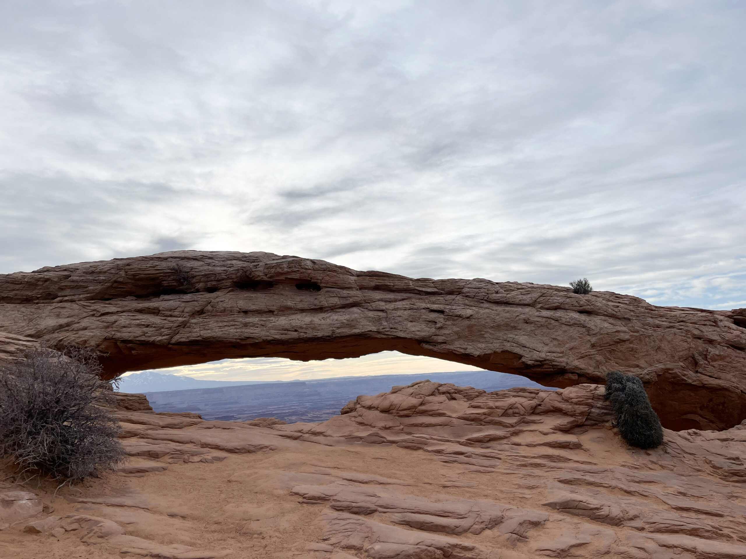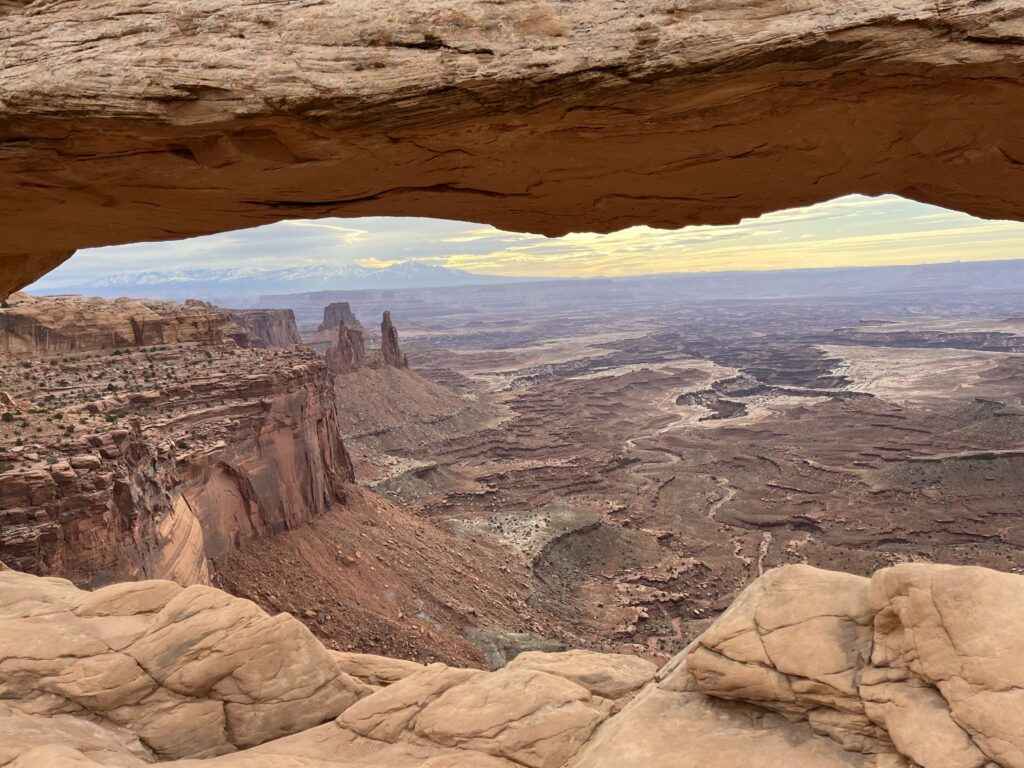 メサアーチからはホワイト・リムが見えます。断崖絶壁にあり、言葉を失うほど素晴らしい絶景が眺められます。